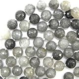 Faceted grey quartz round beads. This strand is 7" long, about 12mm in diameter, 12 beads.
