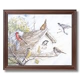 Cheapest Red Birds Finch At Birdhouse Country Home Decor Wall Picture Framed Art Print