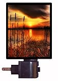 This beautiful night light image is from the irish countryside. It combines a beautiful sunset and the relaxing cattails to create a truly stunning image. You'll be amazed on how beautifully this picture lights up when turned on! It is very colorful! This light makes a very unique gift and perfect as a stocking stuffer, office gift, or grab bag gift. Photographic image is printed in the USA using high quality inks. **PLEASE NOTE** Unlike cheaper night lights, the light bulb on these decorative lights are fully enclosed! No more seeing an exposed bulb when looking at the night light from the side. You'll love the richness of the light as it provides you with both safety and improved visual attractiveness. This is an extremely well built and solid unit! LED bulb for extra long life, cool to the touch bulb and reduced electrical usage. Unlike cheaper models, this bulb is FULLY ENCLOSED for safety and visual attractiveness. Plug can be rotated to accommodate outlets in any direction. Glass front for vivid visual display. Unit is fully U/L approved.