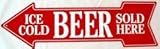 Ice Cold Beer Arrow Sign. All items we stock are licensed in accordance with trademark and copyright requirements. Ice Cold Beer Arrow Sign Colors: Red & White Size: 6" x 20" Each item individually shrink wrapped Drilled holes for quick and easy display Great for the Home, Office or garage
