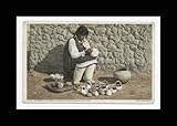 Printed on Canvas at 4 x 6 inch and shipped mounted in 5 x 7 inch black mat, ready to frame (includes heavy backer). Item from the Historic Postcard collection, reprints in multiple sizes and finishing from thousands of historic postcards. Postcard Reprint Woman Decorating Pottery, Pueblo Isleta, New Mexico 1907-1908. Postcard Reprint Archival Canvas Print in 5 x 7 inch Black Mat 1907-1908
