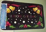 Holiday Deco Nourison Kitchen or bath rug. Brightly colored with bells and SEASON'S GREETINGS. 18x30 Holiday Deco Nourison Seasons Greetings Rug 18x30 Black, red, green holiday colored kitchen rug 100% ACRYLIC with latex back Great for kitchen or bath machine washable