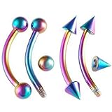 All item is exactly as shown in the picture and the item will be shipped with beautiful jewelry box or pouch at no extra cost. Number of Item(s): 4 Pieces Jewelry Types: Curved barbell Body Piercing Parts: Eyebrow Gauges: 16G(1.2mm) Length / Diameter: 3/8"(10mm) Material Colors: Rainbow