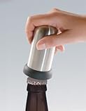 Deluxe stainless steel remover pops off crown caps in seconds. Place on top of the bottle and press and cap pops off easily. Rubber rim at base. 4-1/4'' tall, 2'' dia. at middle.